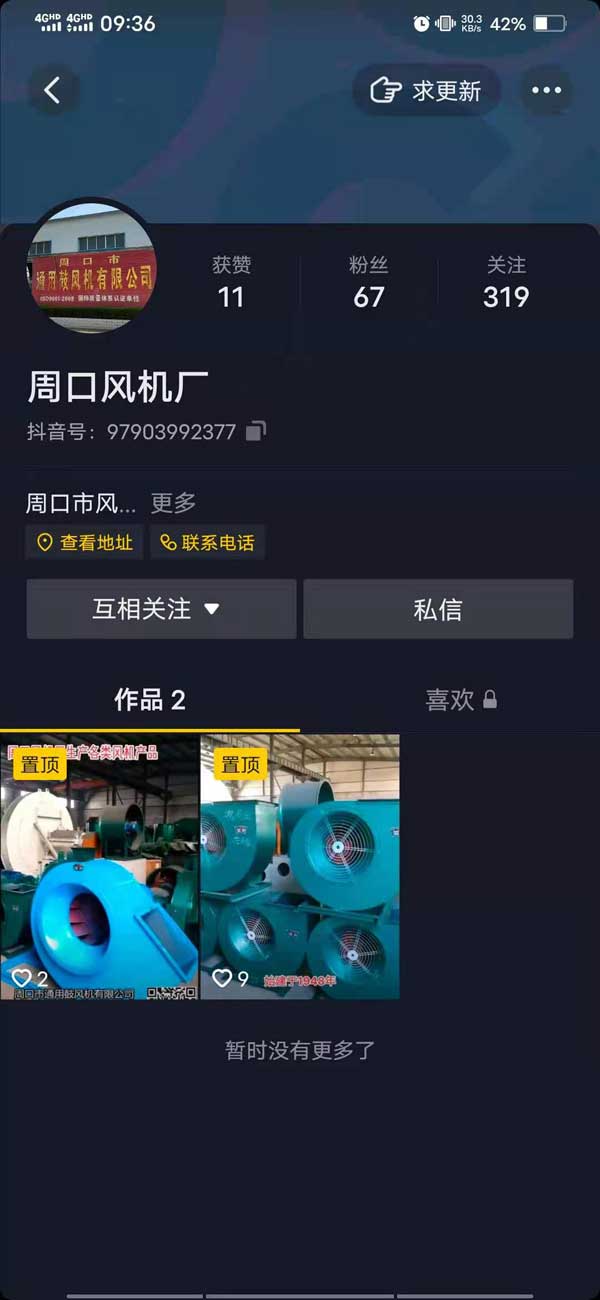 抖音名称Q?strong>周口风机厂,抖音号ؓQ?strong>97903992377?/strong>